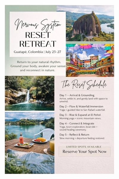 Meet Larissa, your guide for this Guatape retreat--a skilled yoga instructor focused on nervous system resets, helping you release stress and return to balance. Through her grounded leadership, she creates a powerful space for transformation, connection and inner clarity.